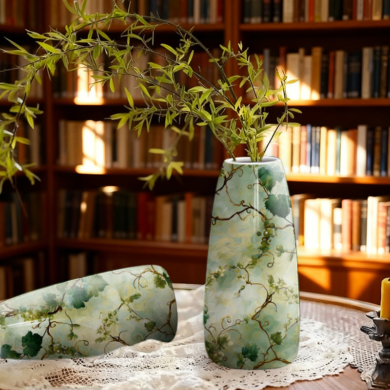 keraamiline vaas | Käsitsi maalitud roheline ja kollane lillemuster valgel taustal, elegantne ja kaunis modernseks kodukaunistuseks, ideaalne kingitus