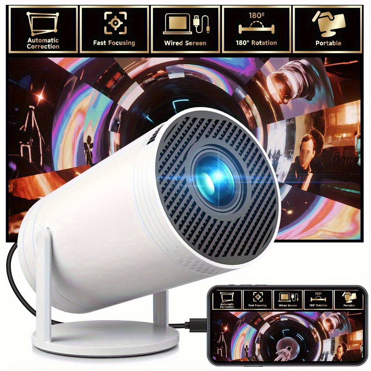 XYA Ultra-HD Mini nutikas filmiprojektor. Pakub paindlikku pöörlemist ja üliselget suurt ekraani, võimaldades kiiret fookuse reguleerimist. See sobib ideaalselt nii koduseks kui ka kontoris kasutamiseks, muutes selle ideaalseks kingituseks sõpradele ja perele.